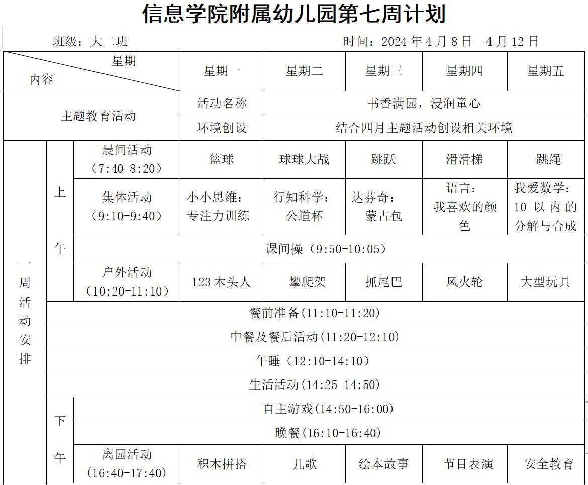 大二班第二学期第七周计划