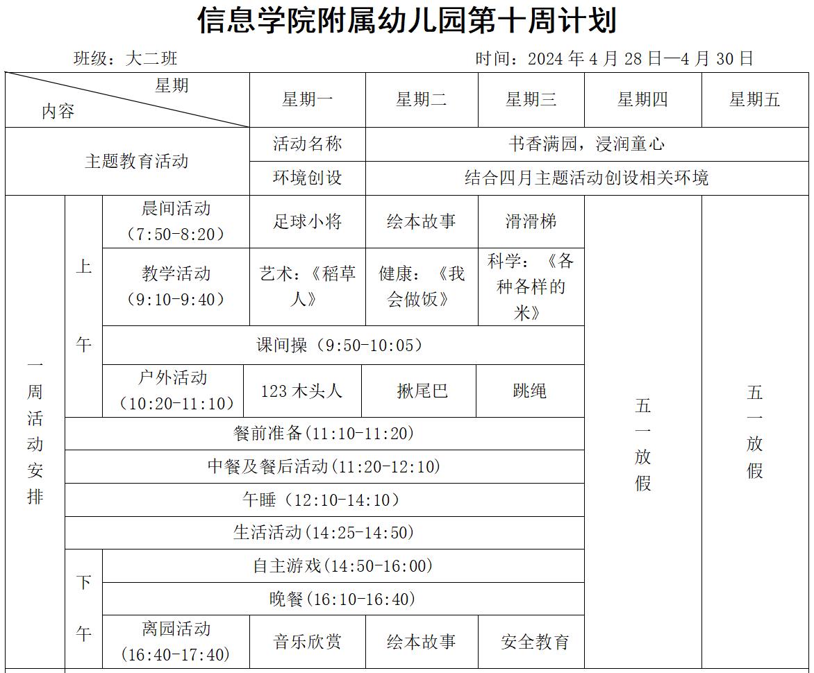 大二班第二学期第十周计划