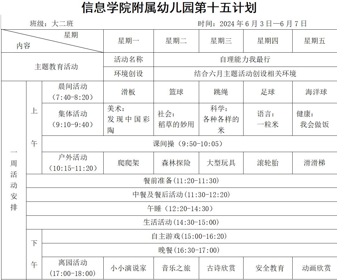 大二班第二学期第十五周计划